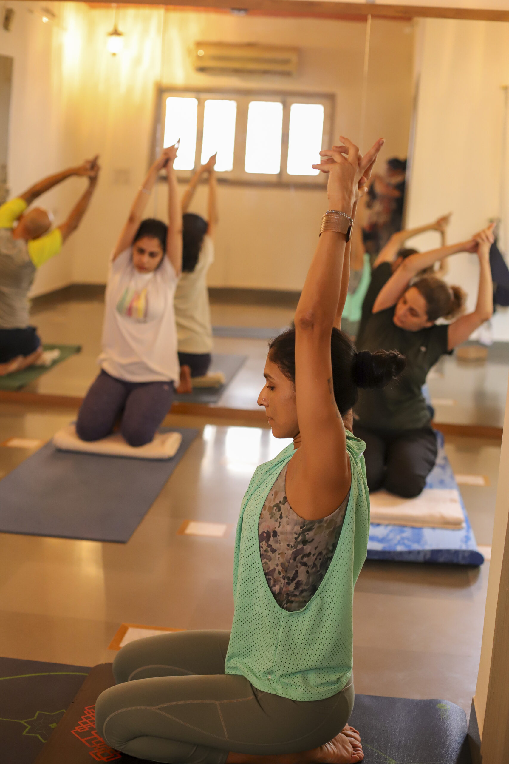 Using the yogic principles, we work on all dimensions combining Asanas, Pranayama, and Dhyan.